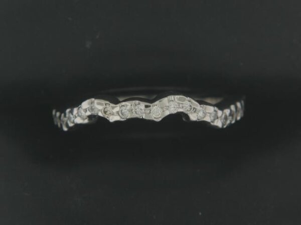 Crafted in 14K white gold, this custom curved band features a total diamond weight of 0.15 carats. The delicate design creates a timeless and sophisticated look.
