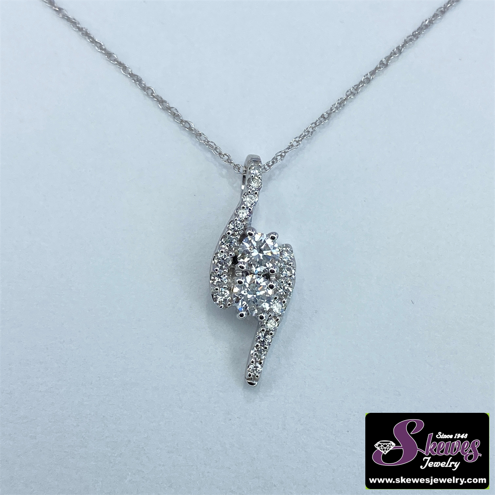 Elevate your style with this 14K white gold pendant featuring two shimmering diamonds. A timeless piece that adds a touch of sophistication.