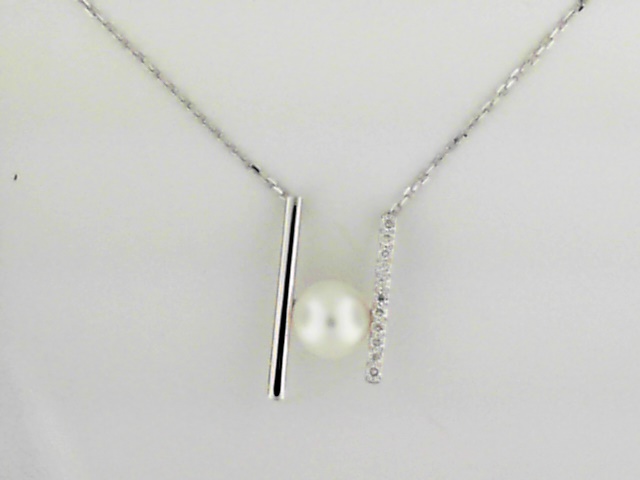 14K White Gold Freshwater Pearl and Diamond Pendant