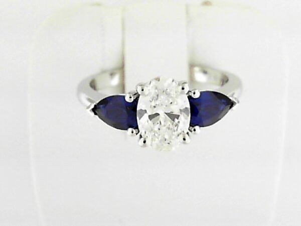 Elevate your style with this exquisite 14K white gold semi-mount ring. Featuring a 1.00ct lab grown diamond center and two lab grown sapphires, this ring showcases the perfect balance of elegance and sophistication. Crafted with meticulous attention to detail, this piece is a true masterpiece that will captivate all who behold it.