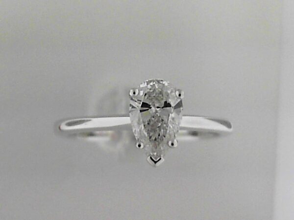 Elevate your style with this exquisite 14K white gold ring featuring a captivating lab grown pear shaped diamond solitaire. Crafted with meticulous attention to detail, this ring is a true testament to timeless elegance.