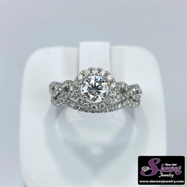 Elevate your proposal with this stunning 14K white gold semi-mount engagement ring featuring a lab grown diamond center stone. Customize it with your choice of compatible gemstone.