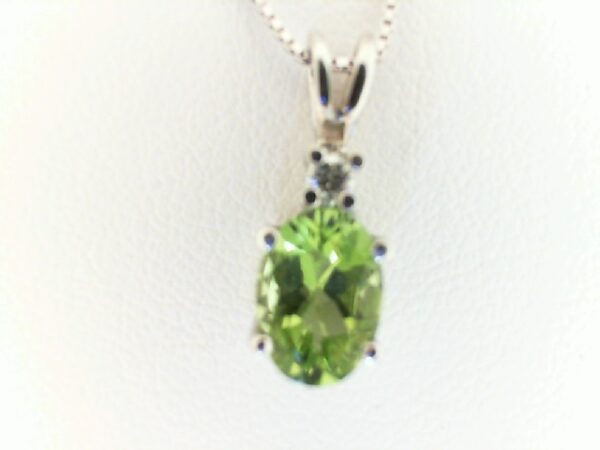 Elevate your style with this 14K white gold pendant featuring a captivating peridot gemstone. The delicate design showcases the natural beauty of the stone, making it a versatile accessory for any occasion.