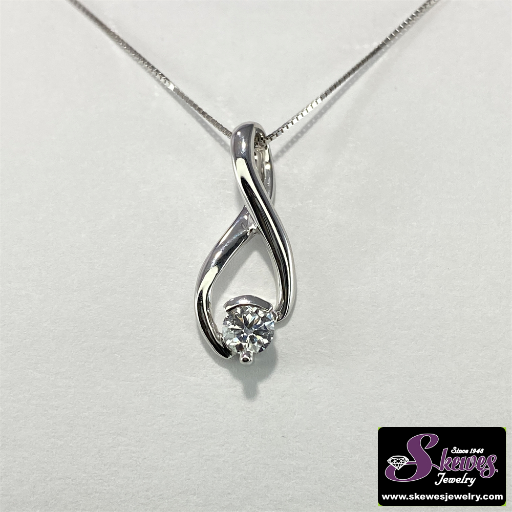 This 14K white gold semi-mount ring is designed to be set with your choice of compatible gemstone. The slide mounting is ready to showcase a round lab grown diamond of .34 carats, VS clarity, and D/E color.