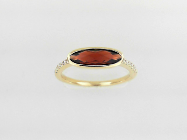 Elevate your style with this stunning 14K yellow gold ring featuring a 1.33ct garnet center stone and 0.10ct diamond accents. The classic design creates a timeless and sophisticated look.