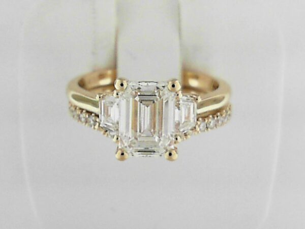 Timeless 14K yellow gold semi-mount engagement ring with a 2.01ct E VS1 Emerald Cut lab grown diamond center and a 0.23ct wedding band, creating a stunning 2.65ct total weight set.