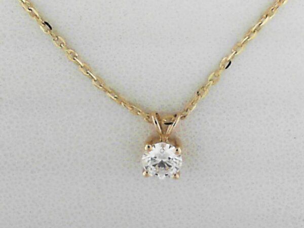 Elevate your style with this stunning 14K yellow gold pendant featuring a .50ct lab grown round diamond of VS clarity and E/F color. The sleek design showcases the diamond’s brilliant sparkle.
