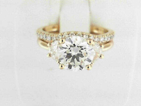 Elevate your engagement with this stunning 14K yellow gold semi-mount bridal set. Featuring a 2.26ct F VS2 round lab grown diamond center and a complementary wedding band, this set offers a captivating look that will take your breath away.