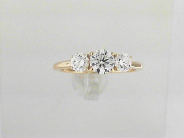 Elevate your style with this stunning 14K yellow gold ring featuring a trio of lab grown diamonds totaling 1.00 carats. The classic three-stone design creates a timeless and sophisticated look.