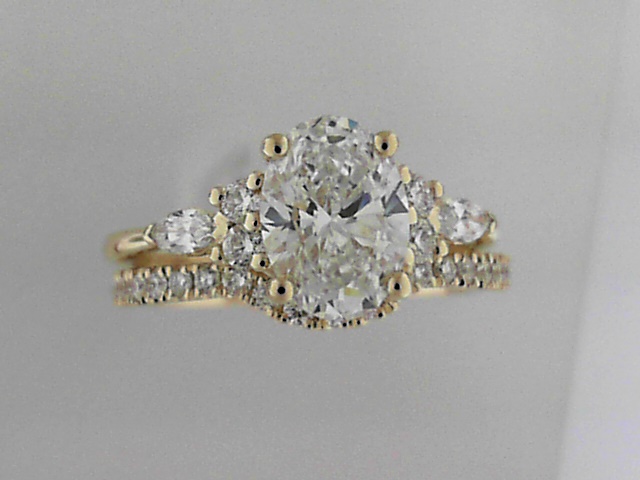Elevate your proposal with this stunning 14K yellow gold semi-mount ring featuring a 1.74 carat total weight oval lab grown diamond. Customize it with your choice of compatible gemstone.