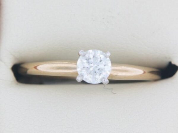 Crafted in 14K yellow gold, this stunning solitaire diamond ring features a round brilliant-cut diamond weighing 0.31 carats with SI3 clarity and G color.