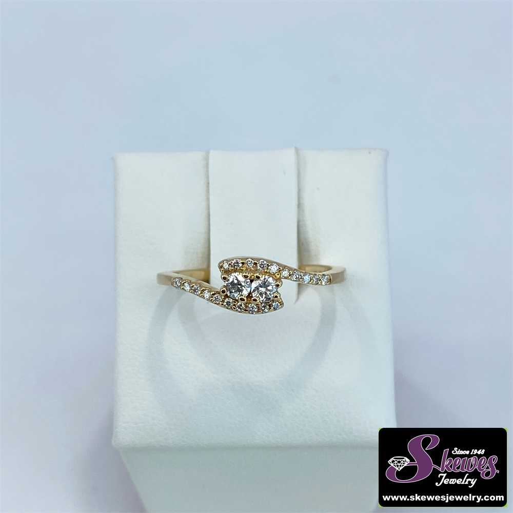 Crafted in 14K yellow gold, this stunning ring features two sparkling diamonds totaling 0.26 carats. The classic design makes it a versatile choice for any occasion.
