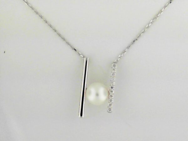 18″ 14KW 6-6.5mm Freshwater Pearl and Diamond Pendant Dia TW.06