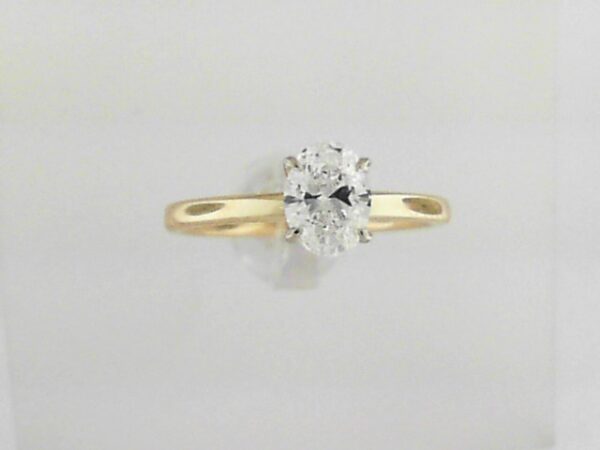 Elevate your style with this elegant two-tone 14K semi-mount ring. Featuring a lab grown oval diamond, it provides a versatile canvas to showcase your preferred gemstone. Crafted for timeless appeal.