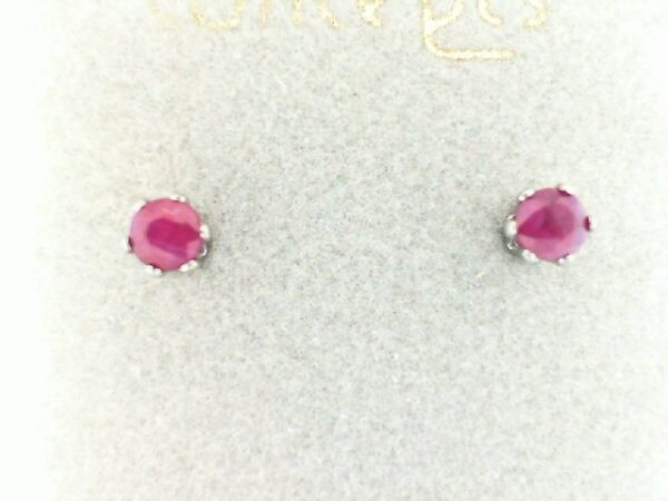 Elevate your look with these versatile white gold earrings that can be set with your choice of compatible gemstone. The genuine ruby center offers a timeless elegance.