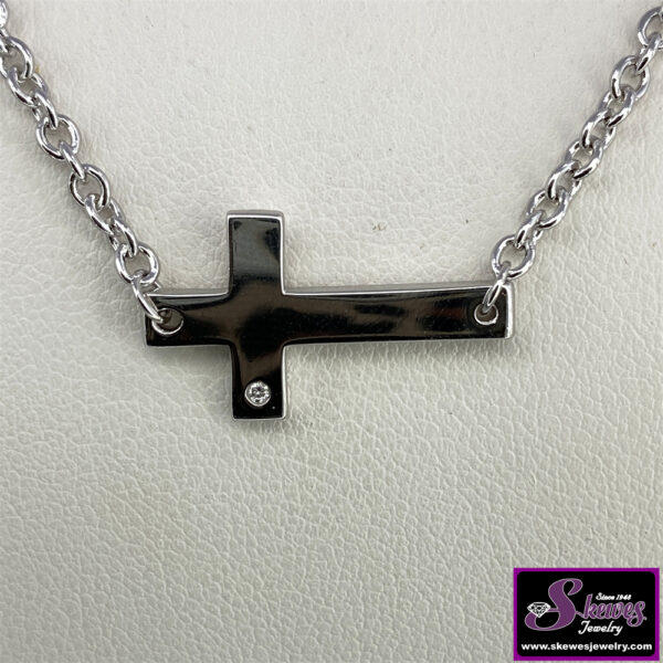 Diva Diamonds Sterling Silver Sideways Cross Pendant with Diamond .01