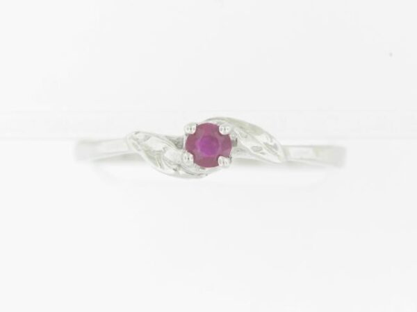 Elevate your style with this exquisite 10K white gold ring featuring a captivating ruby center stone. Crafted with meticulous attention to detail, this piece exudes timeless elegance.