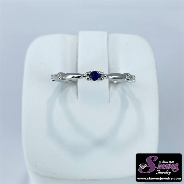 Elevate your style with this exquisite 10K white gold ring featuring a captivating sapphire center stone. Crafted with meticulous attention to detail, this piece is a true testament to timeless elegance.