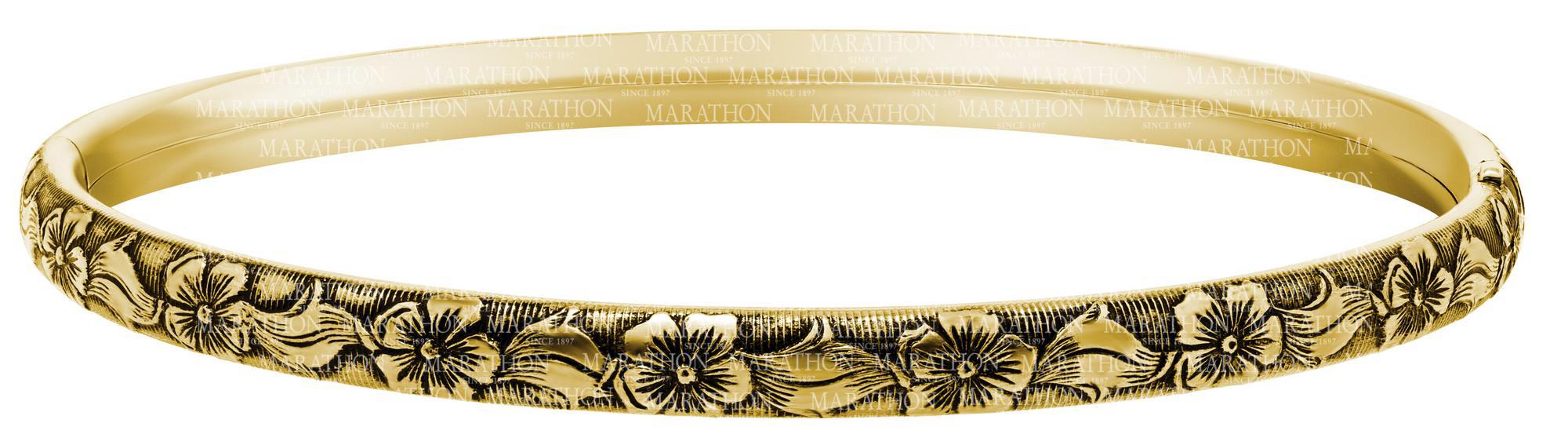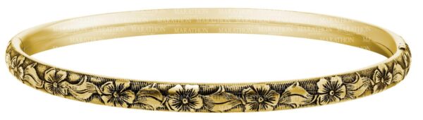 Elevate your style with this exquisite 14K gold filled bangle featuring a delicate floral design with an antique-inspired finish.