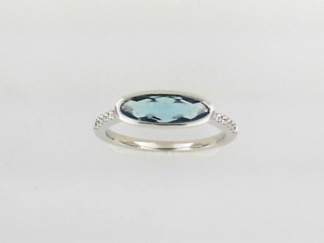 Elevate your style with this exquisite 14K white gold ring featuring a captivating 1.30 ct Swiss blue topaz center stone and sparkling diamond accents. The perfect blend of elegance and sophistication.