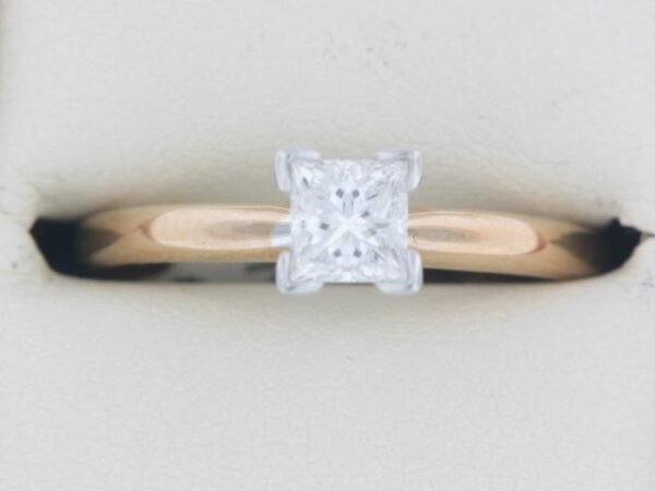 Elevate your style with this exquisite 14K yellow gold ring featuring a dazzling princess cut diamond solitaire. Crafted with precision, this ring is a timeless symbol of elegance.