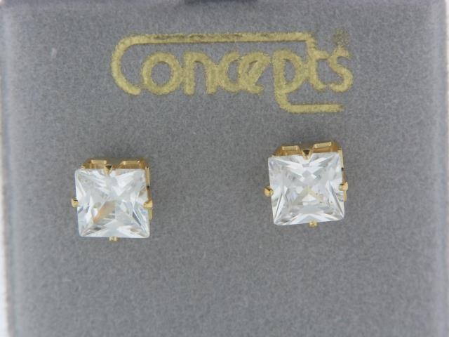 Elevate your look with these stunning 6×6 mm Cubic Zirconia stud earrings in a classic yellow gold-tone setting. Crafted for everyday elegance, these earrings add a touch of refined sparkle to any outfit.