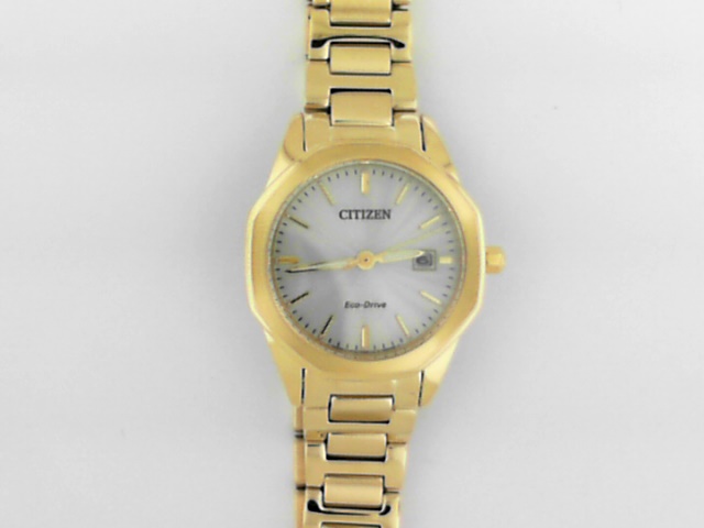 Elevate your style with this sophisticated ladies 10K yellow gold tone Citizen Eco-Drive watch. Crafted for precision timekeeping and lasting elegance, this watch is a versatile accessory for any occasion.