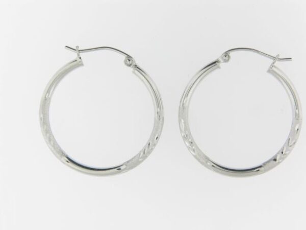 Elevate your look with this stunning 2mm Sterling Silver Engraved Hoop. Crafted with precision, this elegant accessory adds a touch of sophistication to any outfit.