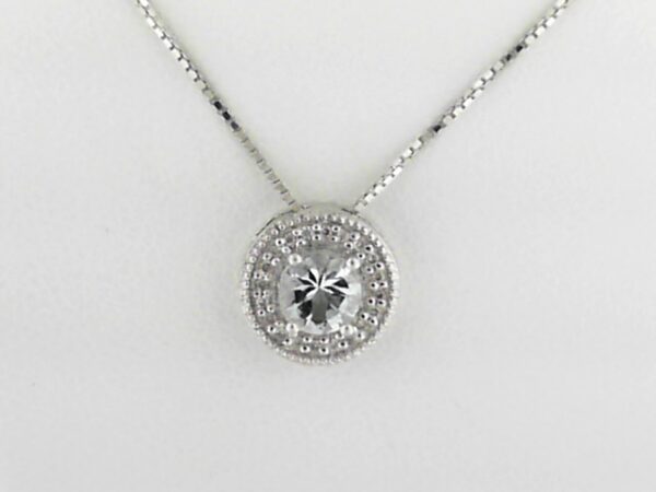 Elevate your style with this exquisite Sterling Silver Aquamarine pendant. Featuring a shimmering Aquamarine stone and accented with delicate Diamonds, this pendant adds a touch of elegance to any outfit.