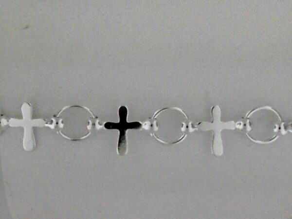Elevate your style with this exquisite Sterling Silver Cross Bracelet. Crafted with precision, it features a delicate cross design that adds a touch of elegance to any outfit.