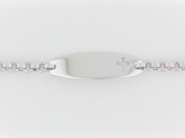 Elevate your everyday style with this stunning Sterling Silver Cross Cut-Out ID Bracelet. Crafted with precision, it features a sleek and modern design that adds a touch of elegance to any outfit.