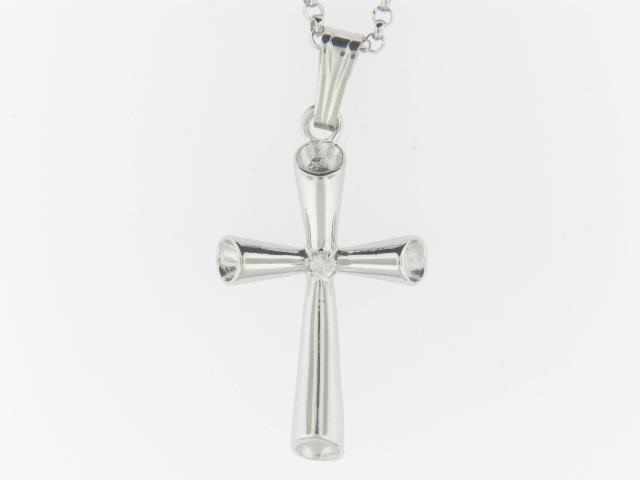 Elevate your style with this exquisite Sterling Silver Cross pendant. Featuring a delicate diamond accent that adds a touch of elegance, this necklace is a versatile piece perfect for any occasion.