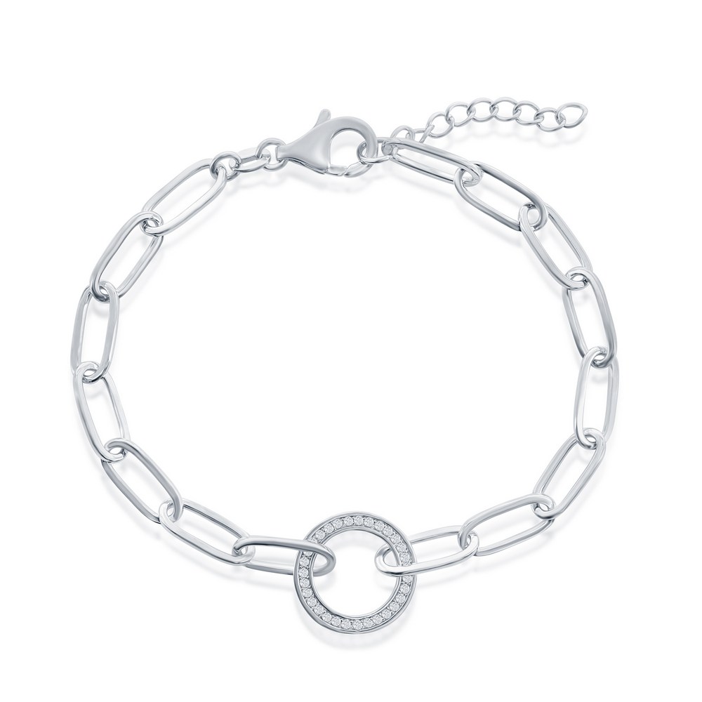 Elegant Sterling Silver CZ Circle Paperclip Bracelet