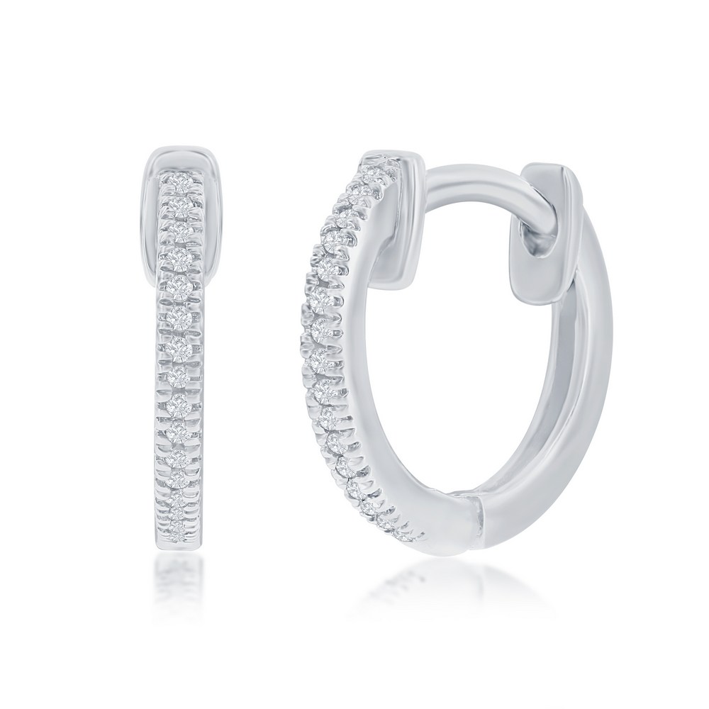 Elevate your look with these stunning Sterling Silver Diamond Huggie Earrings. The .06 carat total weight diamonds add a touch of elegance to this classic hoop design.