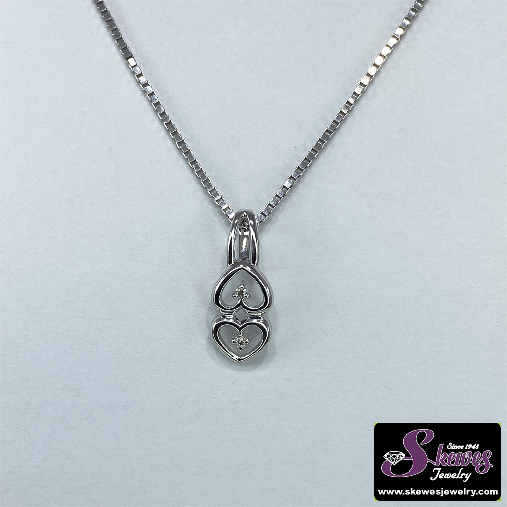 Elevate your style with this captivating sterling silver pendant. Featuring a delicate double heart design, it is adorned with shimmering diamonds that add a touch of elegance.