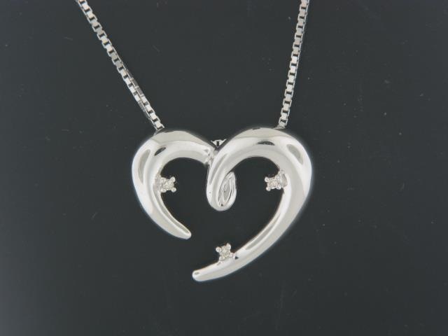 Crafted in gleaming Sterling Silver, this open heart pendant features a delicate design that adds a touch of elegance to any outfit. The pendant is accented with a small diamond accent for a subtle sparkle.