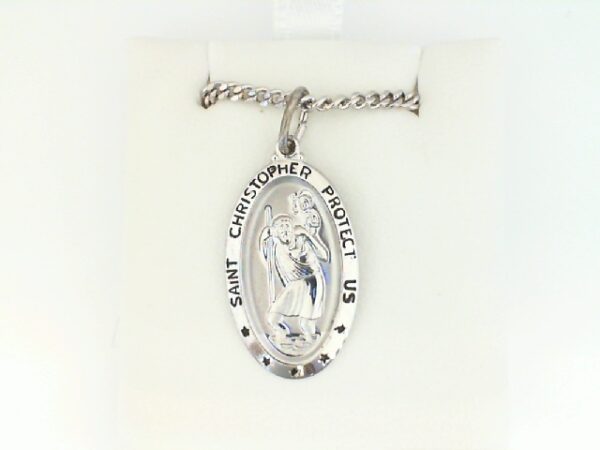 Elevate your style with this exquisite sterling silver oval St. Christopher necklace, a timeless accessory that adds a touch of sophistication to any outfit.