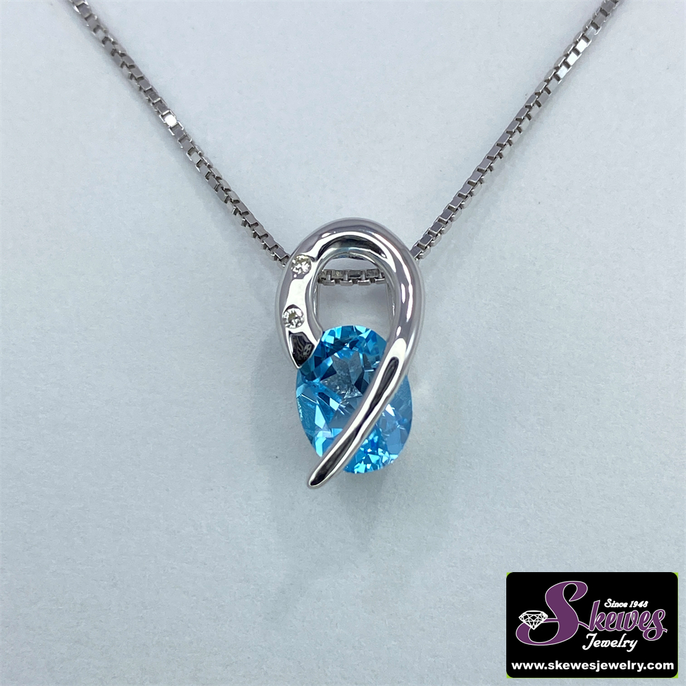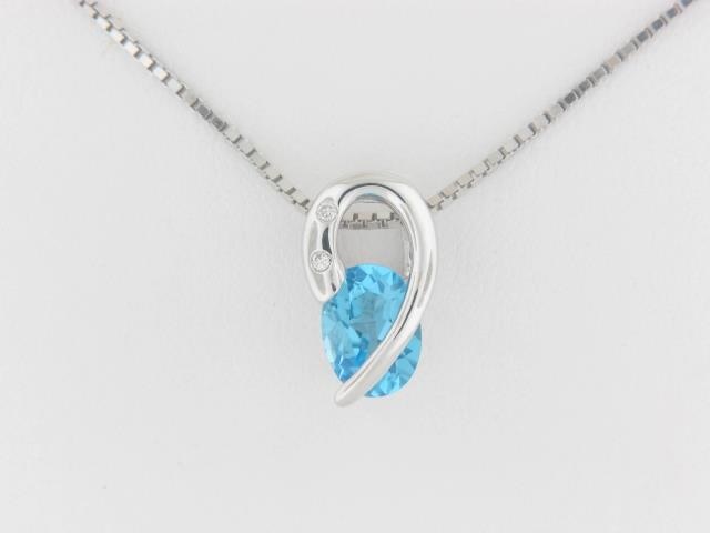 Elevate your style with this captivating Sterling Silver pendant featuring a mesmerizing Blue Topaz and a delicate touch of diamonds.