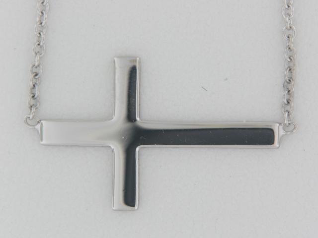 Crafted in gleaming Sterling Silver, this elegant sideways cross pendant adds a touch of refined style to any outfit. Versatile and timeless, it’s a beautiful accessory for everyday wear.