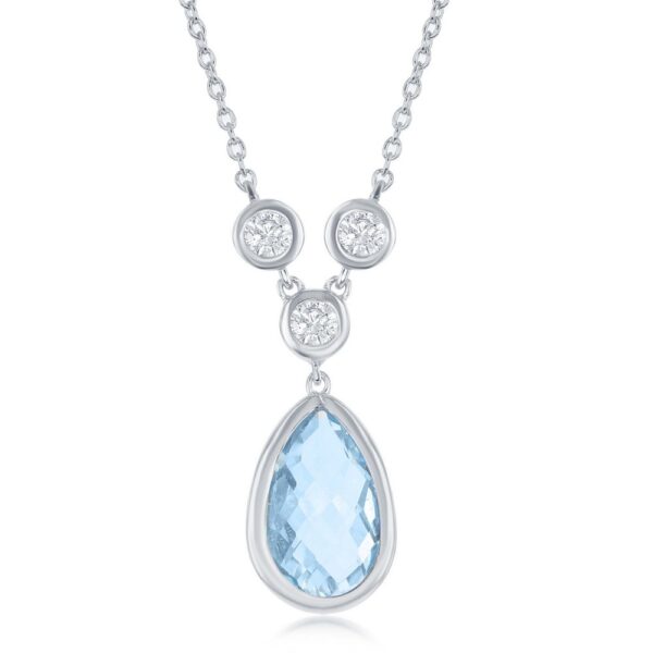 Elevate your style with this exquisite Sterling Silver Teardrop Blue Topaz Pendant, featuring a mesmerizing blue topaz center stone and sparkling white topaz accents. A timeless piece that adds a touch of elegance to any outfit.
