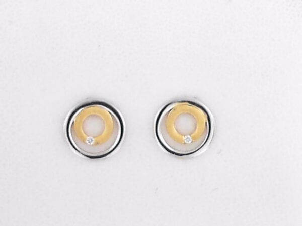 Elevate your look with these stunning two-tone earrings, crafted in a captivating blend of sterling silver and 14K yellow gold. Featuring a delicate diamond accent, these earrings add a touch of refined elegance to any ensemble.