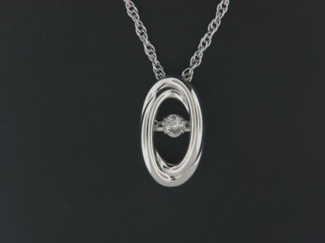 Elevate your style with this captivating sterling silver pendant adorned with shimmering diamond accents. The delicate design adds a touch of elegance to any outfit.