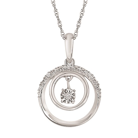 Elevate your style with this captivating sterling silver pendant featuring a delicate arrangement of shimmering diamonds. The perfect accessory to add a touch of elegance to any outfit.