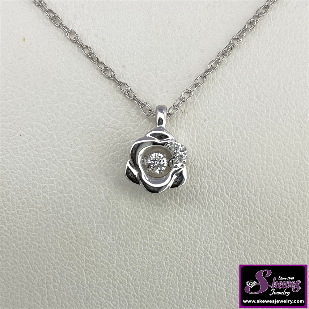 Elevate your style with this captivating sterling silver pendant featuring a shimmering array of diamond accents. The delicate design adds a touch of elegance to any outfit.