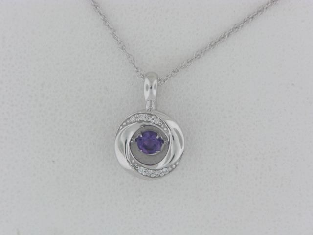 Elevate your style with this captivating Sterling Silver pendant featuring a shimmering Amethyst center stone and delicate Diamond accents. A timeless piece that adds a touch of elegance to any outfit.