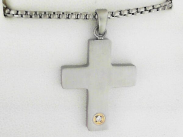 Elevate your style with this sleek Stainless Steel Cross Pendant, featuring a 1.6mm lab-created diamond accent that adds a touch of elegance. Wear it on the included 22-inch chain for a polished, sophisticated look.