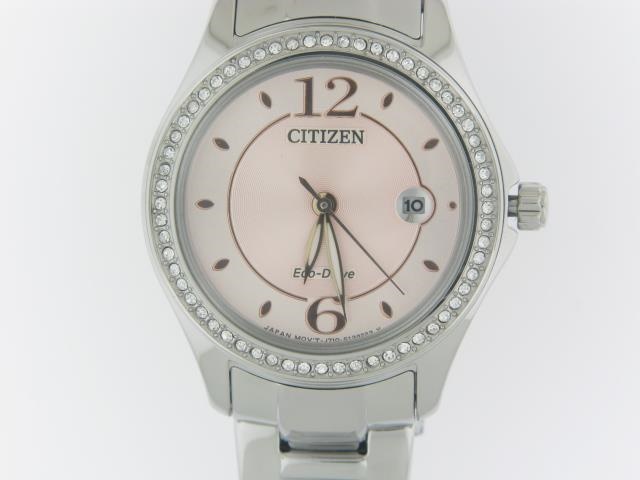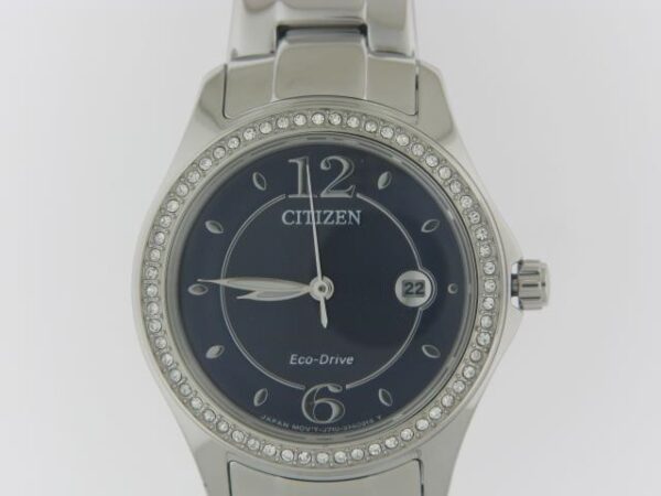 Elevate your style with this stunning Citizen Eco Drive ladies watch, crafted in durable stainless steel and adorned with sparkling crystals for a touch of elegance.