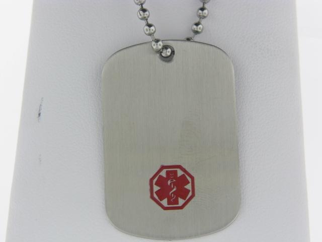 Crafted from durable stainless steel, this medical ID dog tag offers a reliable way to display important medical information. Includes engraving for personalization.