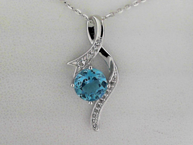 Sterling Silver 2.56ct Blue Topaz Pendant with white Topaz