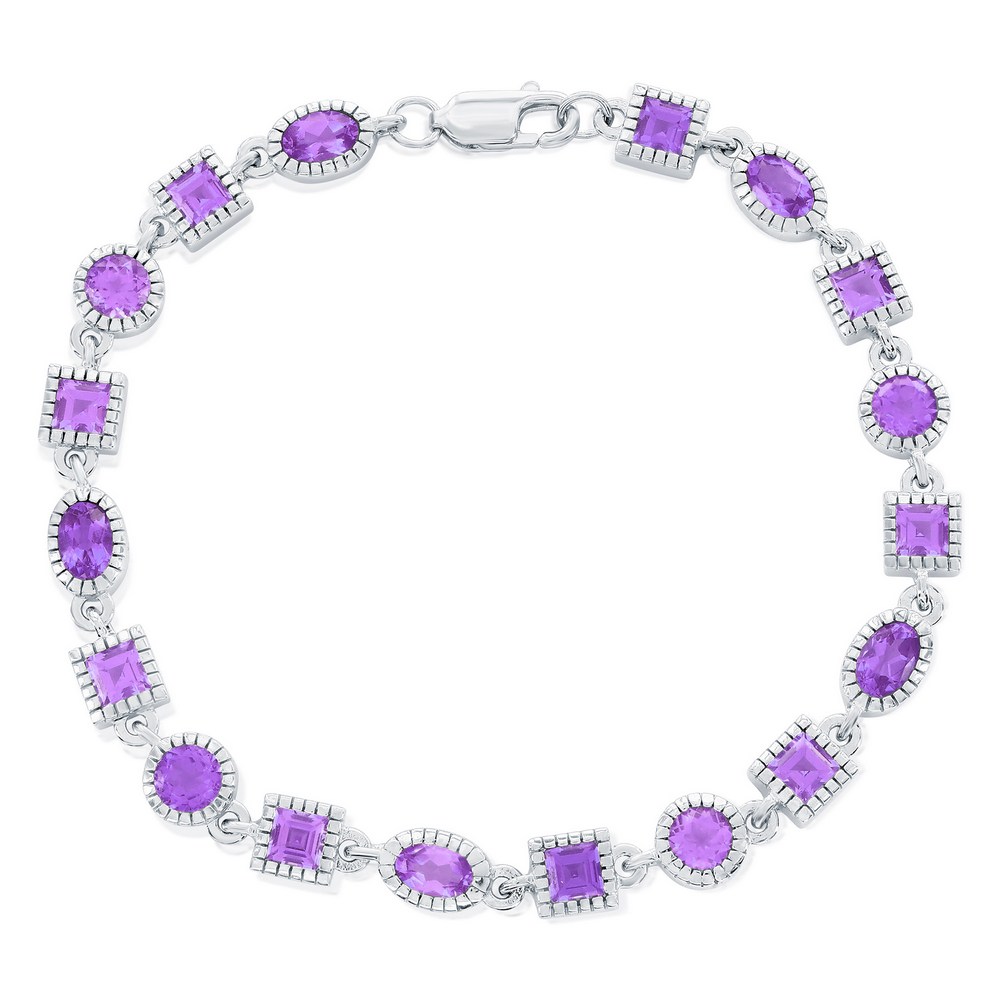 Elevate your style with this stunning Sterling Silver Bracelet featuring a captivating array of Oval and Square Amethyst stones.